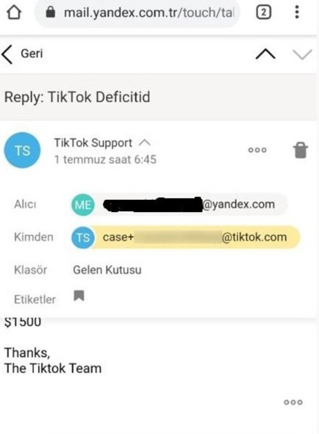 Tiktok ile nasıl iletişime geçtikleri ve aldıkları cevap hakkında bilgi veren Arda Kılıç, “Açığı bulduğumuzda hemen Tiktok’a bildirdik. Bildirmemiz ardından bin 500 dolar gibi bir ödül ile ödüllendirileceğimiz söylendi, ancak biz bu ödülü kabul etmedik. Bize özel (case) mail açmışlardı. Biz de bu mail üzerinden yanıt verdik. Mail yoluyla, ‘Biz, sizin teklifinizi kabul etmiyoruz. Sizde bulduğumuz açık sayesinde çekeceğimiz paralarla kendi para birimimizle size bin 500 TL gönderelim’ cevabını verdik. Türkiye’de herhangi bir temsilciye ulaşamadık. O yüzden biz de yabancılarla mesajlaşmak zorunda kaldık. Bu nedenle süreç biraz zorlaştı. Yine de özel mail sayesinde Tiktok ile iletişimde kaldık. Belki Türk biriyle iletişime geçsek daha iyi ödüller alabilirdik, bu durum biraz canımızı sıktı. Daha önce dünyada Tiktok üzerinde böyle bir açığa rastlanmadı. Normalde Tiktok ile iletişime geçmek uzun bir süreç. Bizim bulduğumuz açık gelir kapısı kapattığı için bizimle iletişime geçtiler, ne kadar ciddi bir açık olduğunun farkına vardılar” diye konuştu. İHA