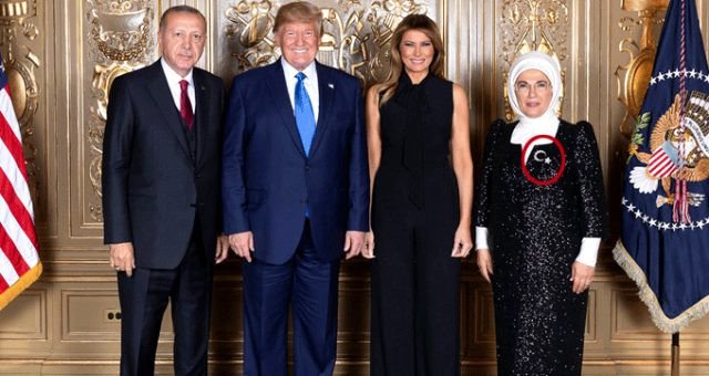 Cumhurbaşkanı Erdoğan ve eşi Emine Erdoğan, Donald Trump ve Melanie Trump tarafından BM Genel Kurul Heyet Başkanları onuruna verilen yemeğe katıldı. Emine Erdoğan’ın Ay-Yıldızlı broşu gözlerden kaçmadı.