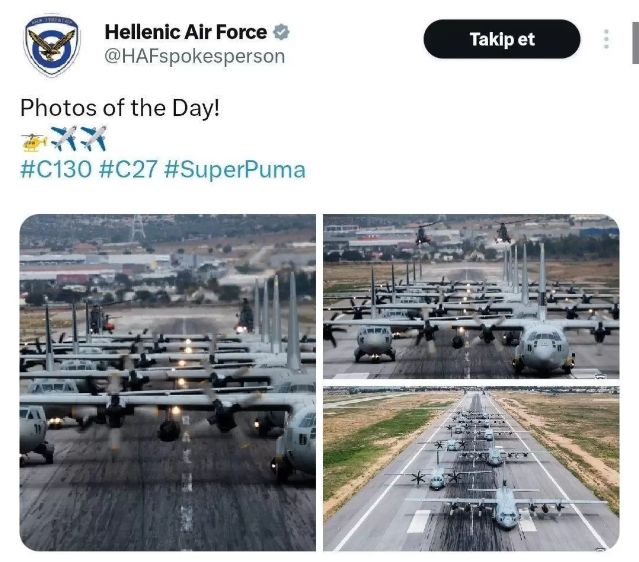 Yunanistan, C130 uçaklarının yer aldığı fotoğrafı “Günün Fotoğrafı” notuyla yayınladı. Paylaşıma Türk kullanıcılardan tepki yağdı.