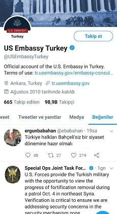 ABD Büyükelçiliği FETÖ firarisi hain Babahan’ın Bahçeli tweetini beğendi!