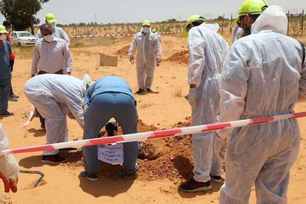 Demirören Haber Ajansı’nın (DHA) UMH birliklerinden elde ettiği bilgilere göre, Libya Kayıpların Teşhisi ve Tespiti Genel Otoritesi ve Libya Kızılay’ı toplu mezarda bulunan sivillerin cesetlerini toplamak için çalışma başlattığı kaydedildi.
