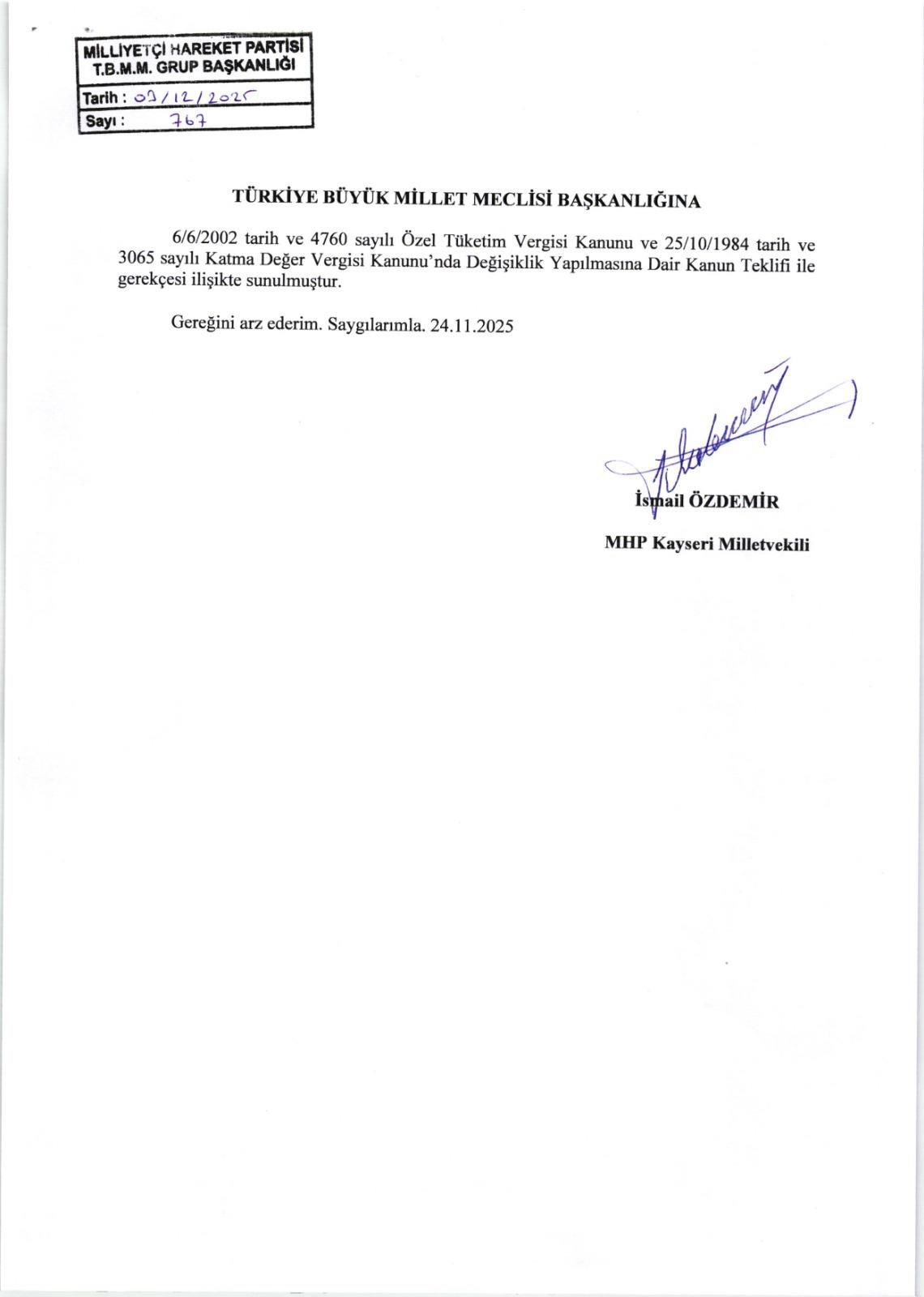 MHP Genel Başkan Yardımcısı ve MHP Kayseri Milletvekili İsmail Özdemir, üniversite öğrencilerinin elektronik cihaz alımlarında Özel Tüketim Vergisi (ÖTV) muafiyeti sağlanmasına yönelik yeni kanun teklifini Türkiye Büyük Millet Meclisi’ne sunduklarını açıkladı.