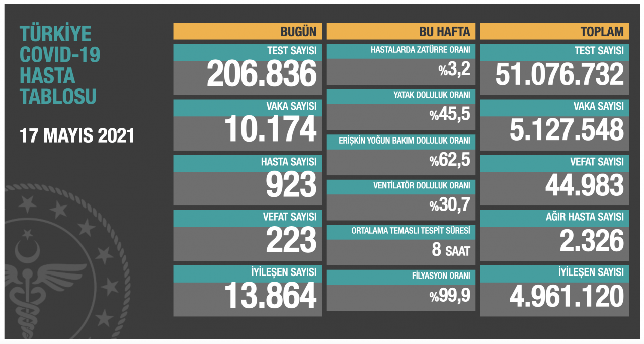 17 Mayıs 2021 Türkiye’nin güncel koronavirüs verileri açıklandı.