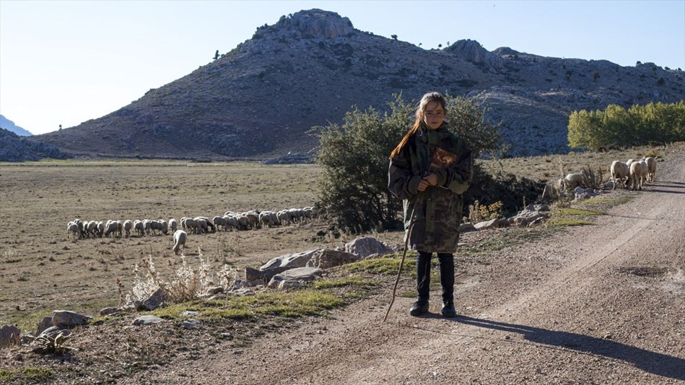 Antalya’da yaz aylarında Yörük ailesiyle birlikte yayla yayla gezen ortaokul öğrencisi Emine Betül, doktor olma hayaliyle koyun ve keçilerini güderken ders çalışmayı da ihmal etmiyor.