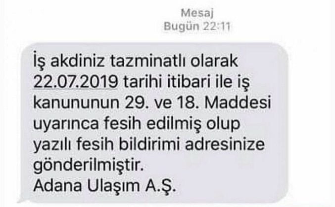 Adana Büyükşehir Belediyesi’nde işçi kıyımı devam ediyor. Büyükşehir Belediyesi’nden 400 işçinin işine dün telefonlarına gelen SMS ile son verildigi bildirildi.