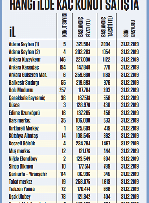 Ödeme seçenekleri ise 15, hatta 20 yıla kadar uzanıyor. Satıştaki konutlar için peşinat oranları, projeye göre yüzde 10, 12, 15, 20, 25 olarak değişiklik gösteriyor. Ödenen peşinata göre vade de uzayabiliyor. Vade süreleri de projeye göre 96, 108, 120, 180, 216 ve 240 ay oluyor. Açık satışlardan dar gelirli vatandaşlar, emekliler ve şehit aileleri yararlanabiliyor.