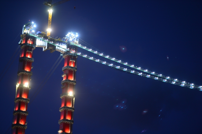 Geceleri tamamlanan kısımları aydınlatılan köprü, adeta görsel şölen sunuyor.