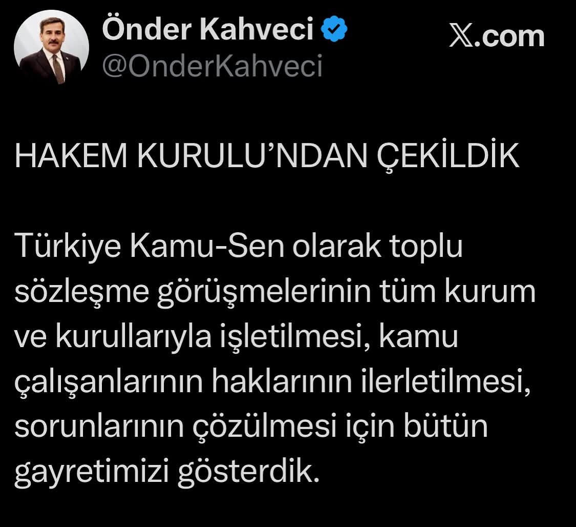 Kamu-Sen de Hakem Kurulu’ndan çekildi ve masada memur tarafı kalmadı.
