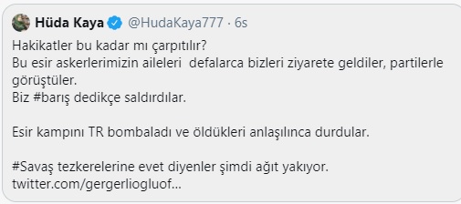 Açıklamada, “(Esir kampını TR bombaladı) ve benzeri paylaşımlar ile PKK/KCK terör örgütünce daha önce kaçırılan vatandaşların görüntülerinin yayınlandığının tespiti üzerine, görüntüleri yayınlayanlar ile paylaşımları yapanlar hakkında, Terörle Mücadele Kanunu’nun 7/2 maddesi kapsamında, terör örgütü propagandası yapmak; Türk Ceza Kanunu’nun 301. maddesi kapsamında ise Türk milletini, Türkiye Cumhuriyeti devletini, devletin kurum ve organlarını aşağılama suçlarından soruşturma başlatıldığı” kaydedildi.