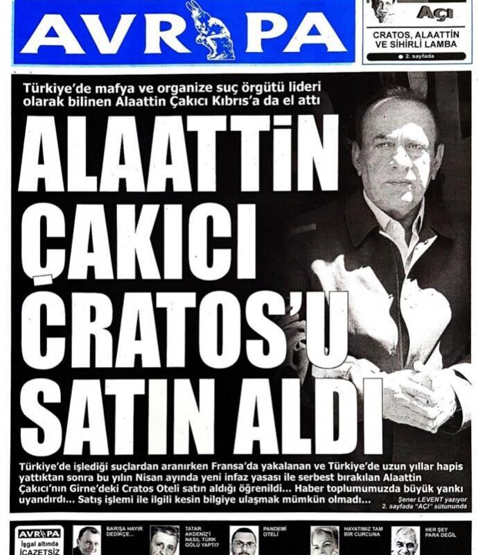 Kamuoyuna saygılarımla, 28.08.2020 tarihli yayınlanan AVRUPA isimli bir gazetede çıkan Alaattin ÇAKICI Kıbrısta CRATOS’u satın aldı yönünde ki haber yalan bir haberdir. Diyen Çakıcı, Cezaevinden çıktığımdan şu zamana kadar ne bir yer satın aldım, ne de bir yer sattım. ifadelerini kullandı…