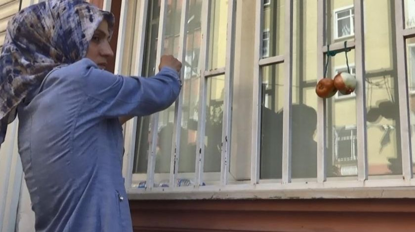 HDP Diyarbakır il binası önünde eylemde olan aileleri ziyaret eden anne Ayşegül Biçer, kendisiyle birlikte getirdiği soğanları HDP il binasının penceresine asmadan önce açıklamada bulundu.