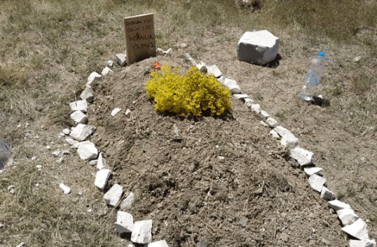 Ankara’nın Sincan ilçesinde boş arazide bir mezar olduğu yönünde ihbar gelen Sincan Emniyet Müdürlüğü ekipleri harekete geçti. Boş arazide üzerinde ‘İnsanlık ölmüş’ yazan mezar polis ekipleri tarafından açıldı. Açılan mezarın boş olduğu anlaşıldı.