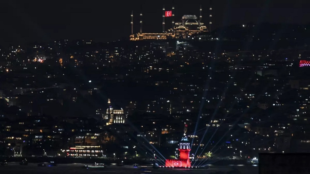 Cumhuriyet’in 100. yılı etkinlikleri kapsamında 15 Temmuz Şehitler Köprüsü’nde dron, havai fişek ve ışık gösterileri yapıldı.
