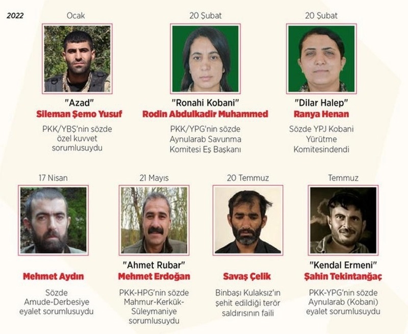 Öte yandan, beyin takımından önemli isimlerin etkisiz hale getirildiği nokta operasyonların yanı sıra sınır ötesinde TSK tarafından başlatılan hava destekli ‘Pençe Harekâtları’nda SİHA ve İHA’ların önemli rol oynadığı operasyonlarla sınır ötesinden Türkiye’ye geçişler önlendi.
