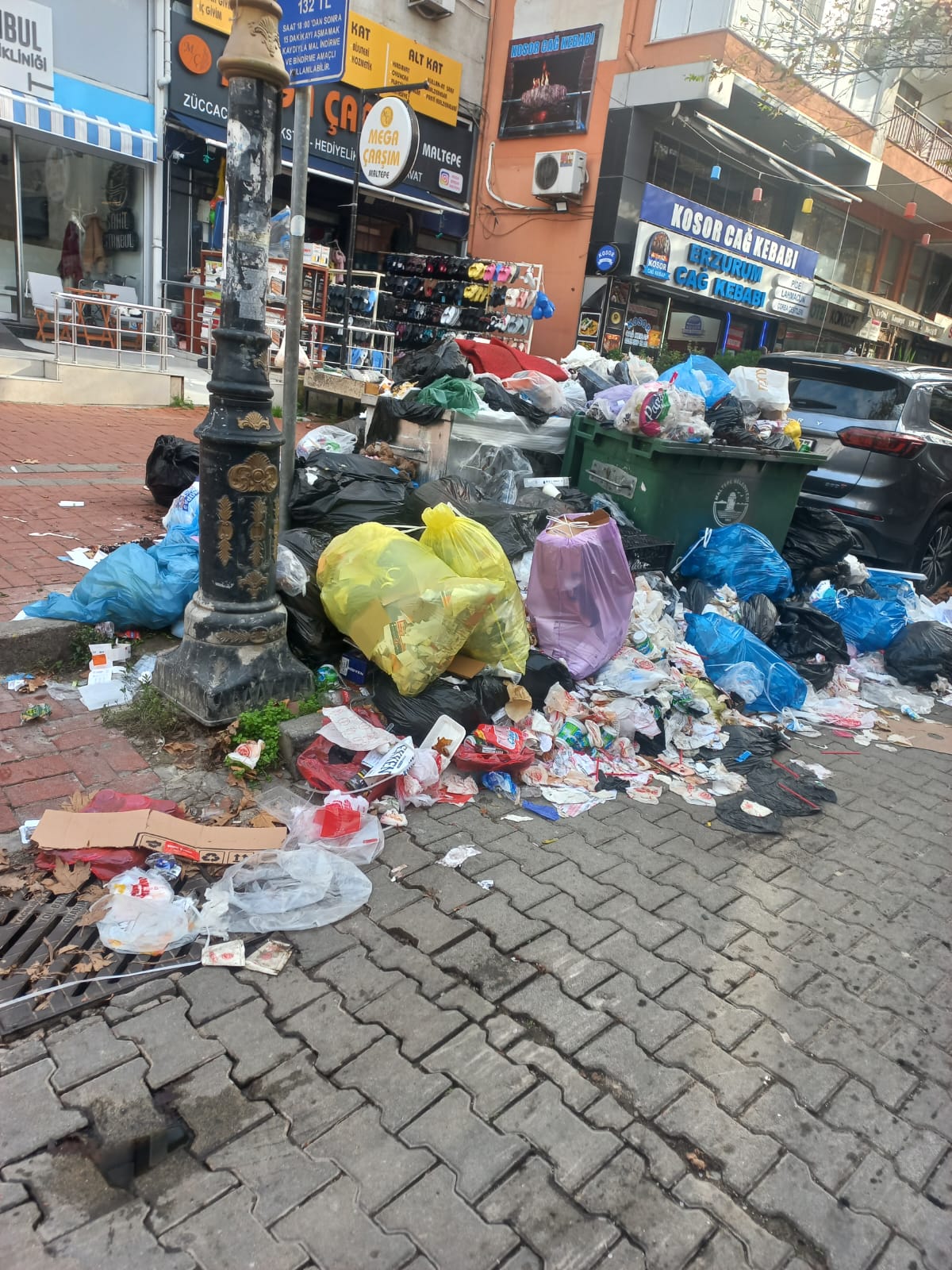 CHP’li Maltepe Belediyesi işçilerinin, ikramiye ve eğitim ücreti talepleri karşılanmadığı için iş bırakması üzerine ilçe genelinde çöpler birikti.