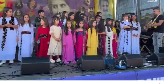 İsviçre’de PKK paçavraları ve terörist elebaşı Abdullah Öcalan’ın posterleri önünde skandal bir festival gerçekleştirildi. PKK’nın kurucularından terörist Sakine Cansız’ın posterlerinin de yer aldığı etkinlikte, PKK propogandasına çocuklar da alet edildi.