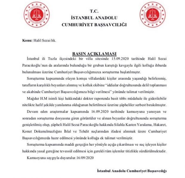 Konuyla ilgili İstanbul Anadolu Cumhuriyet Başsavcılığı bir açıklama yaptı.