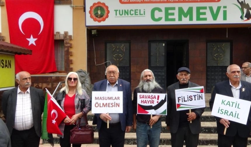 Tunceli’de Hacı Bektaşı Veli Kültürünü Yayma ve Yardımlaşma Derneği Cemevi öncülüğünde Filistin’e destek açıklaması gerçekleştirildi.