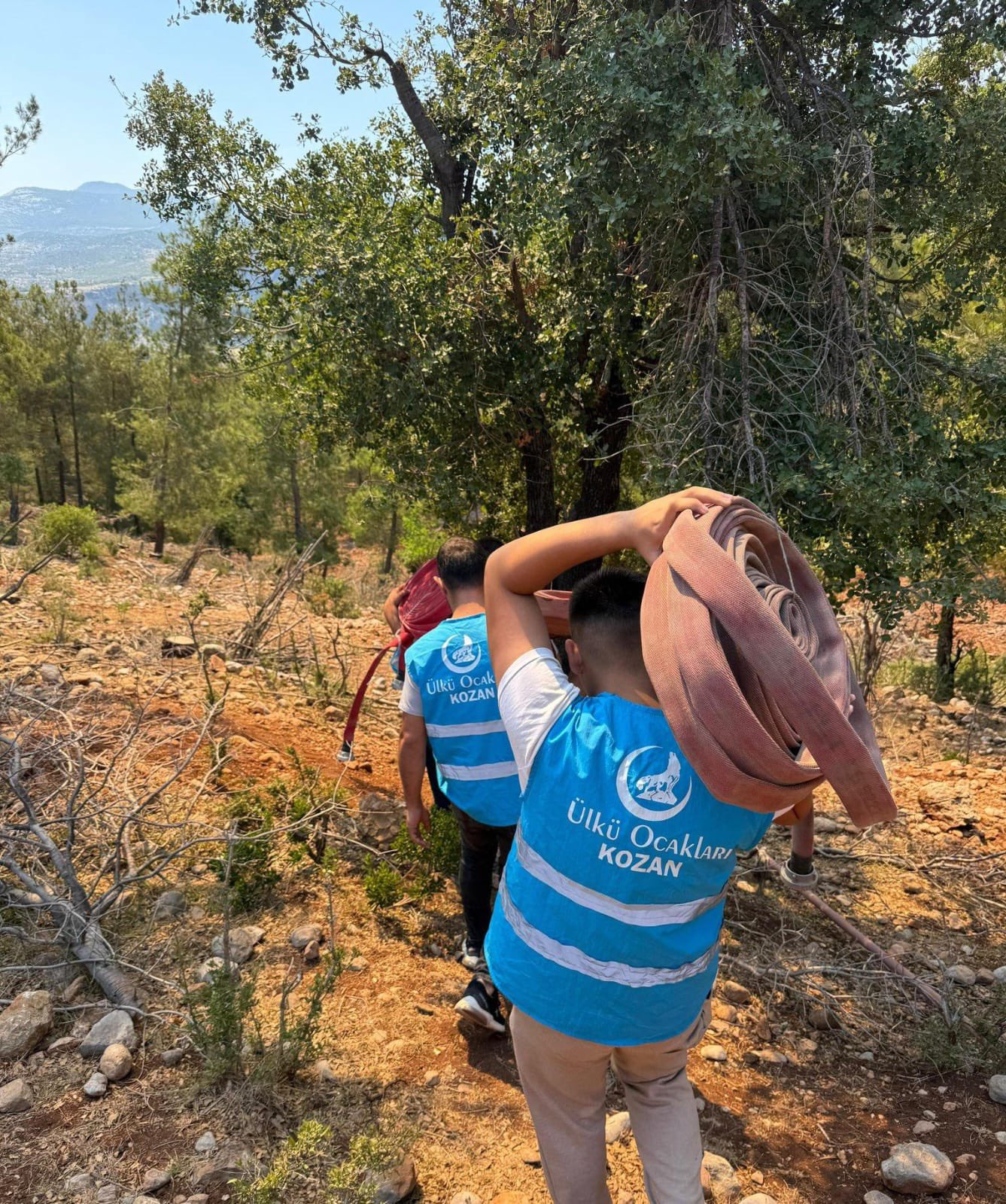 Ülkü Ocakları Adana Kozan İlçe Başkanlığı, ilçede farklı bölgelerde çıkan yangınlarda sahada yer alarak, devletle tam koordinasyon içerisinde hareket etti. Özverili gönüllüler, söndürme ve yardım faaliyetlerine aktif biçimde katıldı.