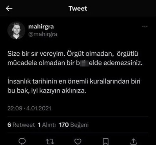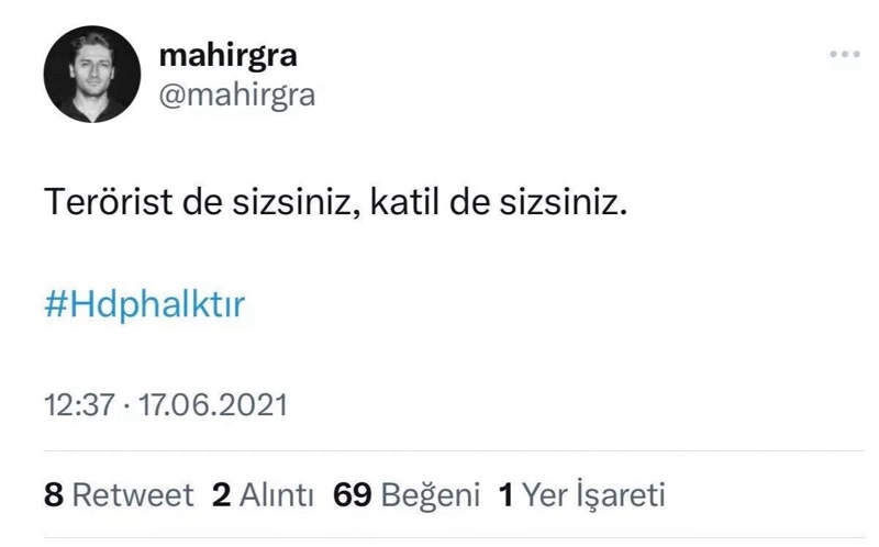 Market raflarına “Bu ürün size pahalı mı geldi? Erdoğan sayesinde” ibaresiyle Cumhurbaşkanı Recep Tayyip Erdoğan ve MHP lideri Devlet Bahçeli’nin fotoğraflarının olduğu etiketler basarak sosyal medyada provokasyon yapan ve gözaltına alınan Mahir Akkoyun’un devlete katil dediği ve terör örgütü YPG’yi Kürt grup olarak nitelediği ortaya çıktı.