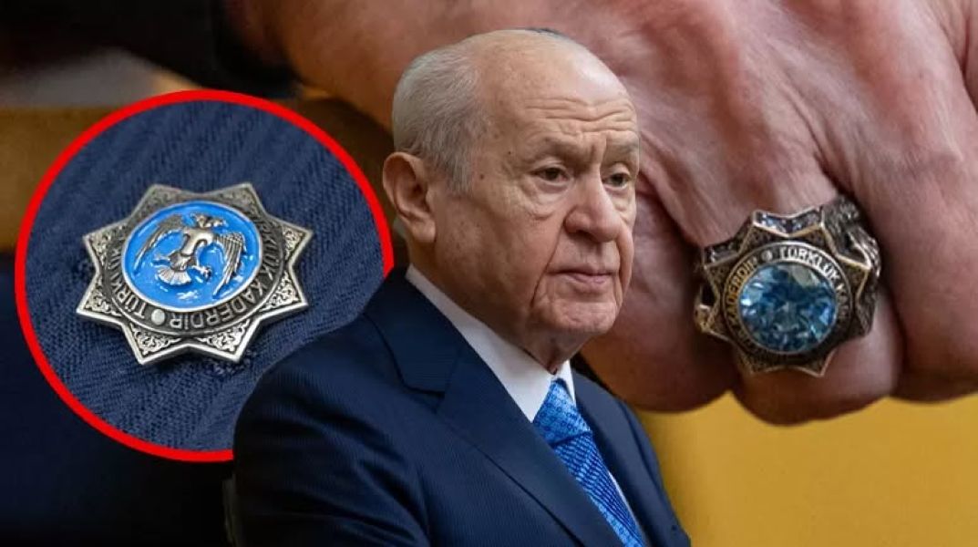 Bahçeli’nin yakasındaki rozet ise yüzükle aynı detay ve oranlara sahip olacak şekilde tasarlandı. Rozet, yüzüğün sembollerini ve estetiğini taşıyarak, liderin stilindeki estetik ve ideolojik kararlılığı pekiştiriyor. Bu rozet, Bahçeli’nin Türk milliyetçiliğine olan bağlılığını ve stilindeki tutarlılığı gözler önüne seriyor.