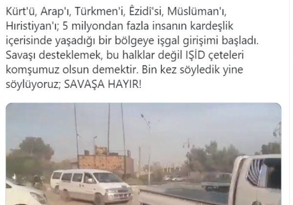HDP’nin Twitter hesabından yapılan açıklamada, “Kardeşlik içerisinde yaşadığı bir bölgeye işgal girişimi başladı.” ifadeleri kullanıldı.