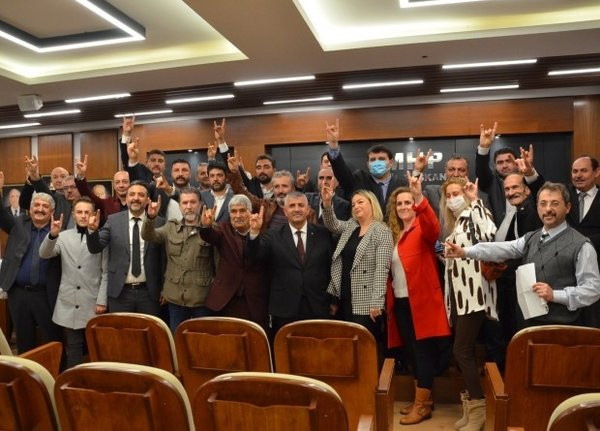 Milliyetçi Hareket Partisi’ne katılımlar sürüyor. CHP Ödemiş Gençlik Kolları Başkanı Özgür Günlü ve bir grup CHP’linin ardından dün de İYİ Parti’den toplu istifa edenler MHP’ye katıldı. MHP İl Başkanlığında yapılan törende rozet takılan partililer Bozkurt selamı vererek fotoğraf çektirdiler.
