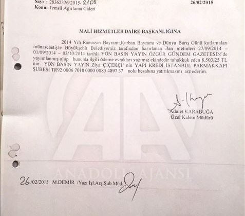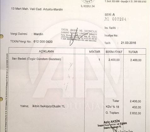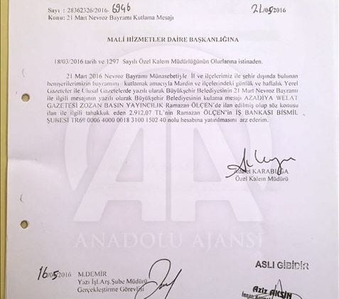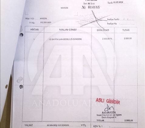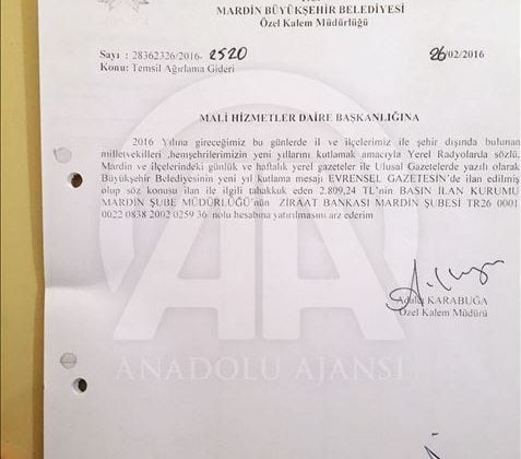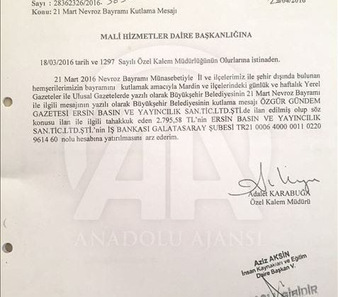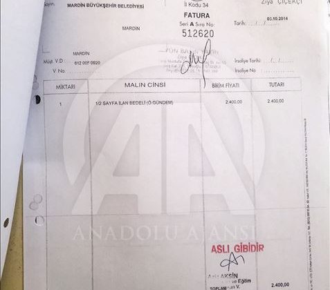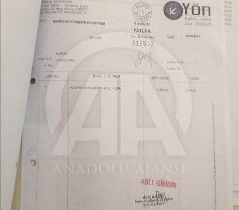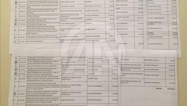 Öte yandan, aynı dönemde Mardin Büyükşehir Belediyesinin, arasında Özgür Gündem gazetesinin yer aldığı KHK ile kapatılan terör örgütü yandaşı gazetelere verdiği reklam ve ilanlara ilişkin faturaların da yer aldığı belirlendi.