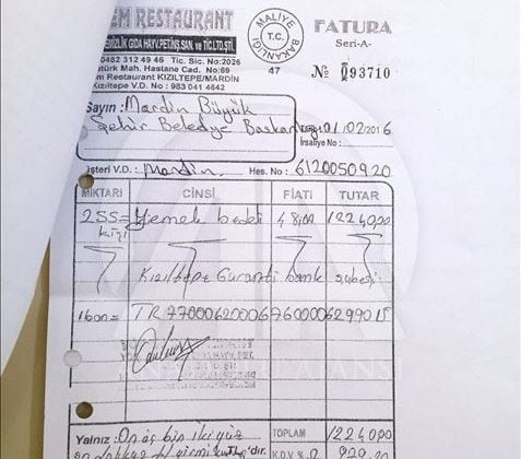 HDP’li Başkan Ahmet Türk’ün belediye başkanlığı döneminde HDP ile Türkiye karşıtı birçok yabancı heyetleri ağırlama gideri olarak 500 bin liralık özel kalem harcamasına ilişkin faturalar ortaya çıktı.