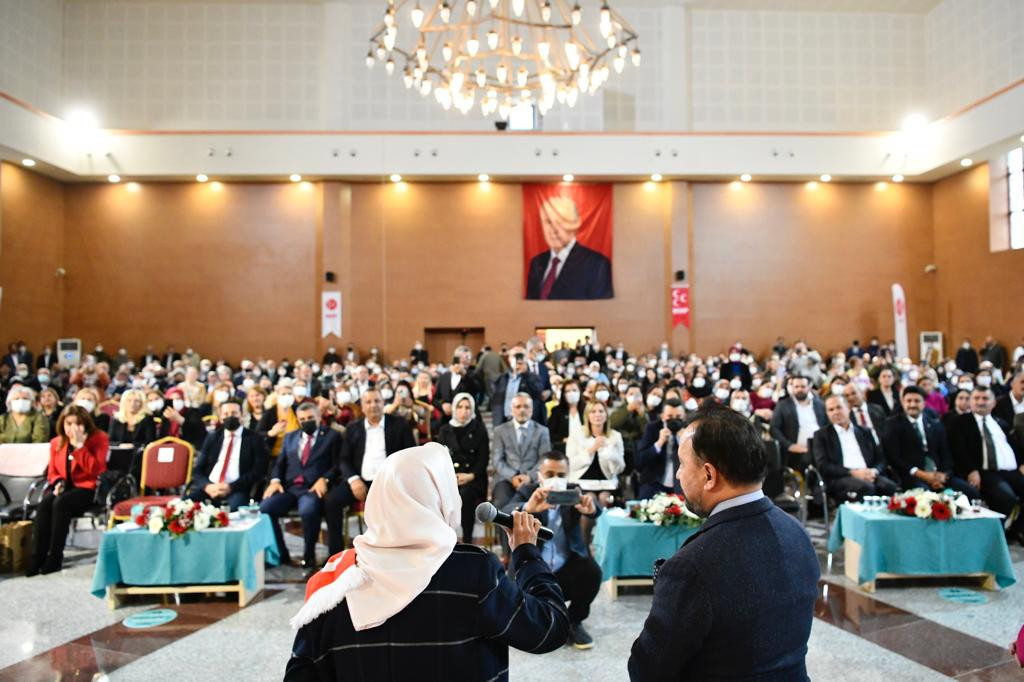 Burada Sarıçam Belediye Başkanı Bilal Uludağ Milliyetçi Hareket Partisi’nin “İlk Kadın Kolları Başkanı’ unvanının sahibi Selver Gedikbaş’a hediye takdiminde bulundu. Salonda bulunanların yoğun alkışları eşliğinde konuşan Gedikbaş Milliyetçi Hareket Partisi’nin bir dava partisi olduğunu belirterek, kendisini unutmayan Sarıçam Belediye Başkanı Bilal Uludağ’a teşekkür etti.