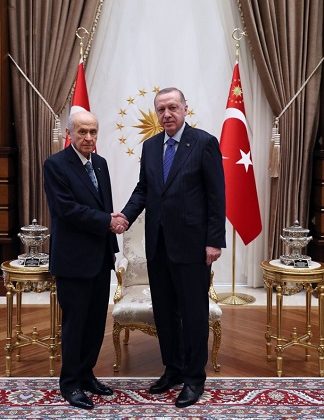 Milliyetçi Hareket Partisi Lideri Devlet Bahçeli ile Cumhurbaşkanı Erdoğan Cumhurbaşkanlığı Külliyesi’nde görüşme gerçekleştirdi. Yapılan bu görüşme 35 dakika sürdü.