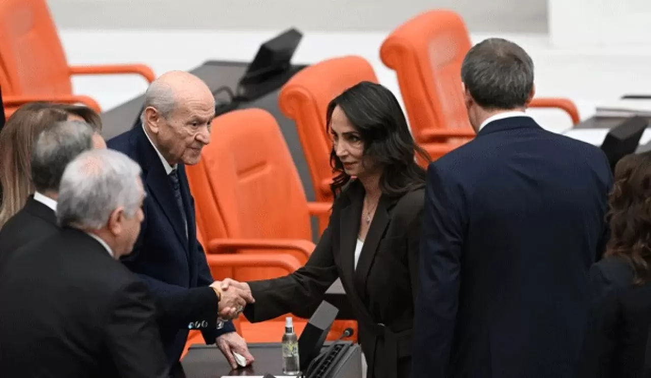 DEM Parti Eş Genel Başkanı Tülay Hatimoğulları, Lider Bahçeli ile tokalaştı.