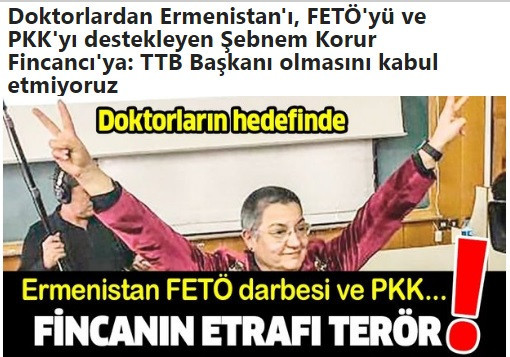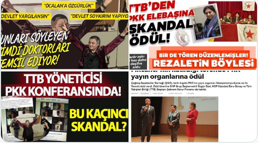 ”Şebnem Korur Fincancı başkanlığındaki Türk Tabipler Birliği, Kandil’in bir şubesi gibi çalışmakta, pkk ve HDP ile birlikte hareket etmektedir.Taktıkları “sağlıkçı, doktor,hekim” maskeleriyle Türkiye düşmanlarına, terör örgütlerine ve onun siyasi uzantılarına hizmet etmektedir.
