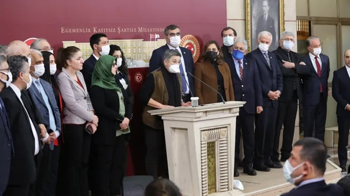 CHP+HDP+İP milletvekilleri, doktor maskesiyle bölücü terör örgütlerinin ve Türkiye düşmanlarının propagandasını yapan Türk Tabipler Birliği başkanı Fincancı ile 13 Ocak 2022’de Meclis’te ortak basın toplantısı düzenlemiştir.