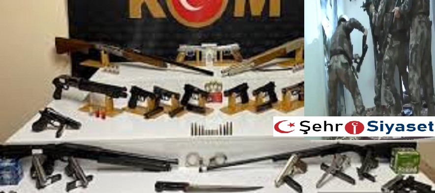 Edinilen bilgiye göre, Bursa İl Emniyet Müdürlüğü Kaçakçılık ve Organize Suçlarla Mücadele Şubesi ekipleri, Bursa ve İzmir’deki 33 adrese eş zamanlı operasyon düzenledi. Çevik kuvvet ekiplerinin de katıldığı operasyonda açılmayan kapılar koç başlarıyla kırıldı. Şüphelilere ait adreslerde yapılan aramalarda 10 ruhsatsız tabanca, 6 ruhsatsız av tüfeği, 6 kuru sıkı tabanca, 112 tabanca fişeği, 35 av tüfeği fişeği, 1 bıçak ve 1 muşta ele geçirildi.