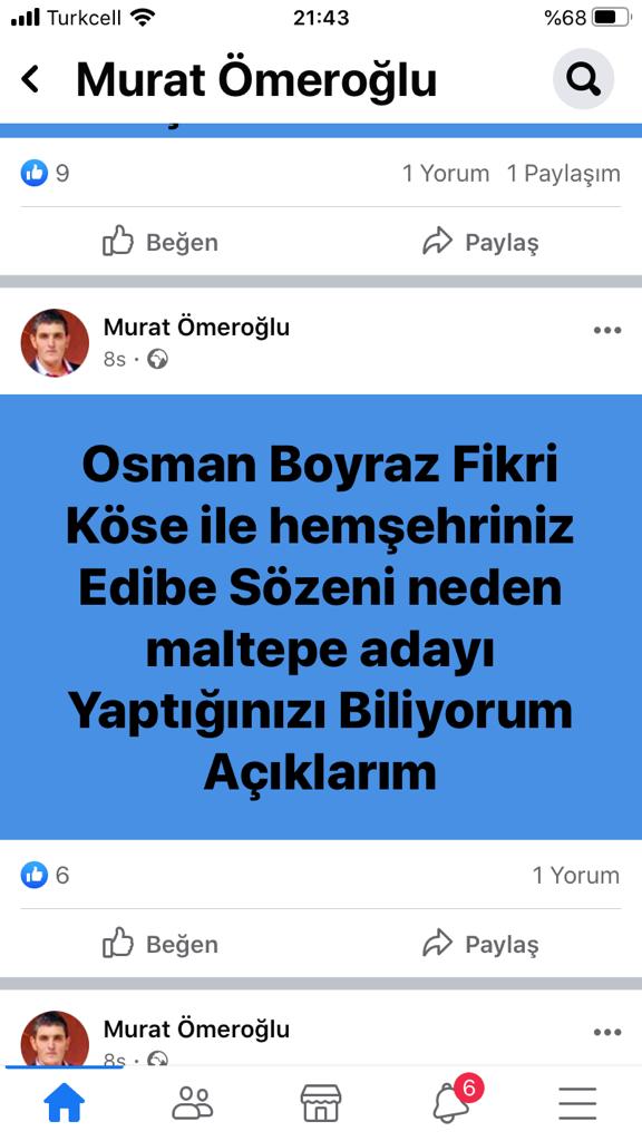 Ömeroğlu’ndan gelen itiraf gibi açıklamada: ” Maltepeyi kaybetmemize ve kazanamamıza sebep Osman Boyraz, Fikri Köse, Erol Kaya gibi menfaatçi çıkarcı kibir abideleridir. Maltepe’den uzak durun ifadelerini kullandı.