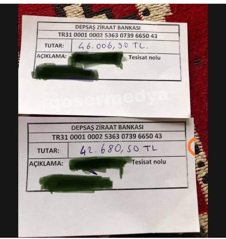 Yüksek elektrik faturasını dahil Çiftçi vatandaşlar, Elektrik borcunu ödemek istediklerinde makbuz verilmediğini belirtiyor. Ancak, vatandaşlar bankaya yatırılması için bir IBAN numarası ve ne kadar yatiracagini gösteren bir kart verildiğini ve kart üstünde de hiç bir isim bulunmadığını ifade ediyor.