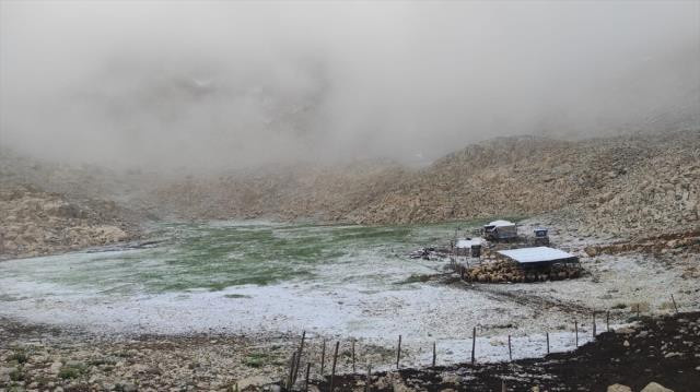 Bölgede çobanlık yapan Oğuz Topaloğlu, 2500 rakımlı dağda haziran ayında kar yağmasının hem şaşkınlığını hem de mutluluğunu yaşadıklarını dile getirdi.