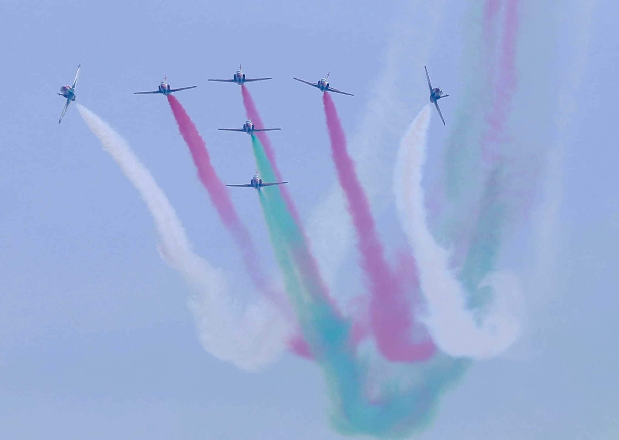 Helikopterler ve savaş uçakları da tören alanını uçarak geçti.