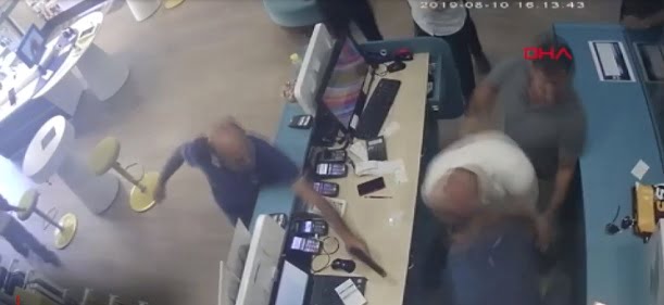 Ataşehir’de açılmayan SİM kart tartışması sonrası telefon bayisine baskın yapan 5 kişi, çalışanı dövdükten sonra silahla bacağından vurdu. Dehşet anları kameraya yansıdı.