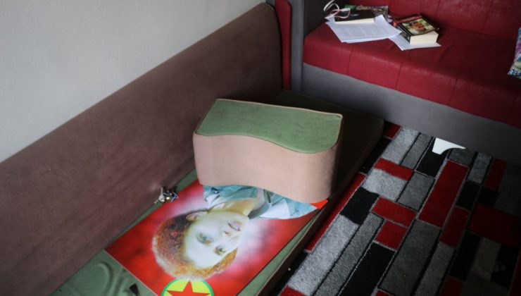 Barış Pınarı Harekatı’nda ele geçirilen YPG-PKK’ya ait kamp ve binalardaki baş köşelere, örgütün teröristbaşı Öcalan’ın posterlerini astığı görülüyor.