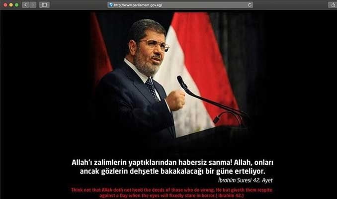 Ele geçirdikleri sitelerde Mursi’nin fotoğrafını paylaşan Türk hackerlar, fotoğrafın altına Türkçe, Arapça ve İngilizce, ‘En büyük arzumuz Allah yolunda şehid olmaktır sözünü şiar edinen ve bunu bütün dünya zalimlerine haykıran Muhammed Mursi’nin şehadetini Allah kabul etsin’ notunu düştü.