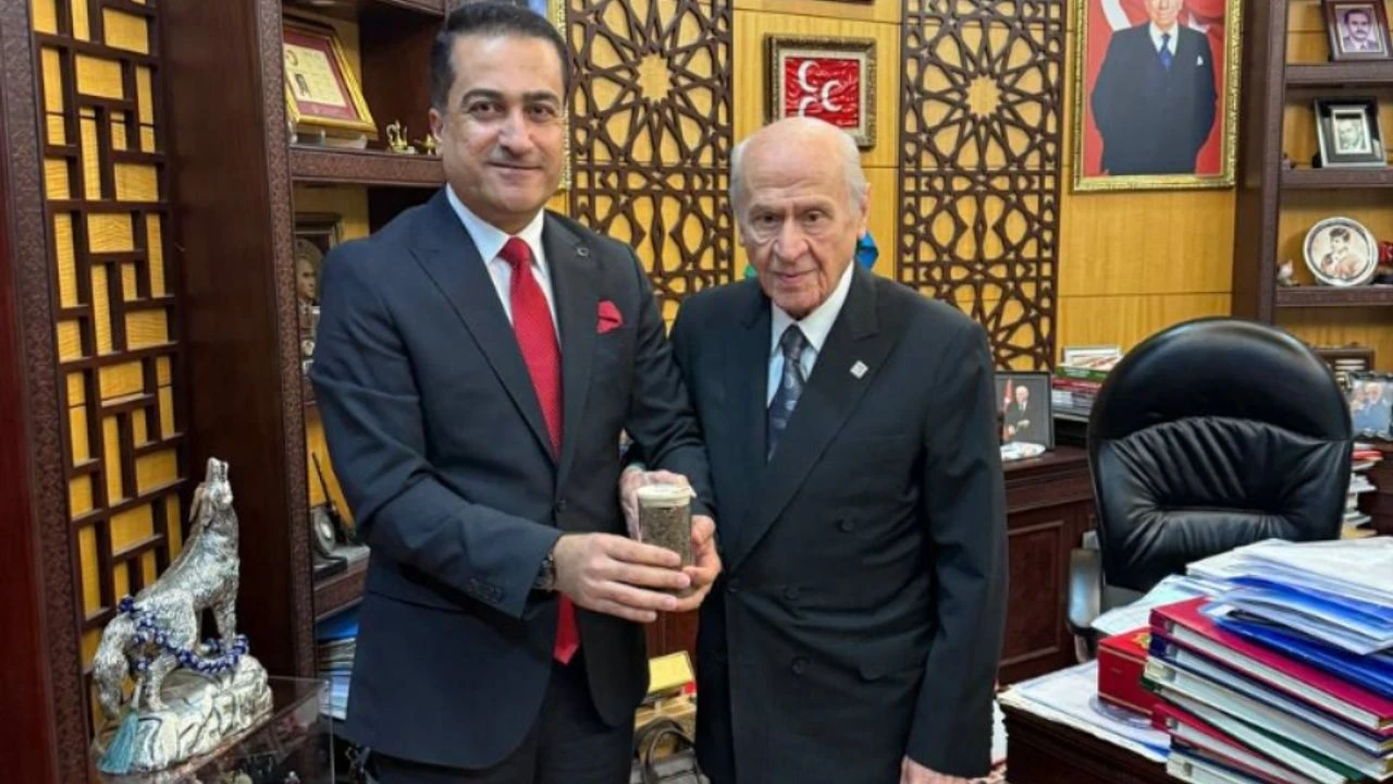 MHP Lideri Devlet Bahçeli, Irak Türkmen Cephesi Siyasi Büro Üyesi Mardin Gökkaya’yı kabul etti.