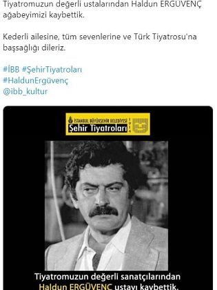 İstanbul Şehir Tiyatroları’nın Twitter hesabından yapılan açıklamada, ünlü sanatçı Haldun Ergüvenç’in hayatını kaybettiğini duyurdu.