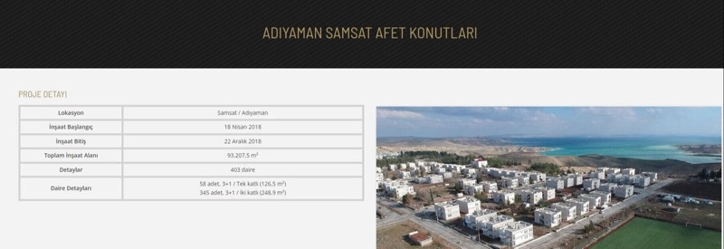 Adıyaman’ın Samsat ilçesinde 2017’de 5.5, 2018’de ise 5.1 büyüklüğünde 2 farklı deprem oldu. Depremin ardından evlerinden olmuş depremzedeler için, afet konutlarının yapımı için tuşa basıldı. 18 Nisan 2018 yılında başlayan konutların inşası, 22 Aralık 2018 yılında bitti.
